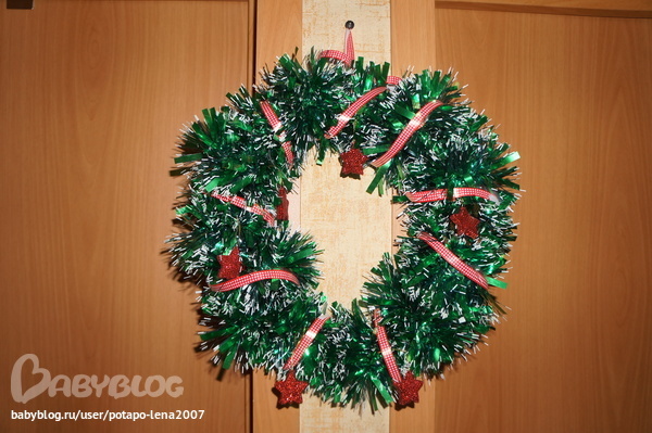 1.Венок повесила в корридоре. Его видно кок только дверь открываешь.