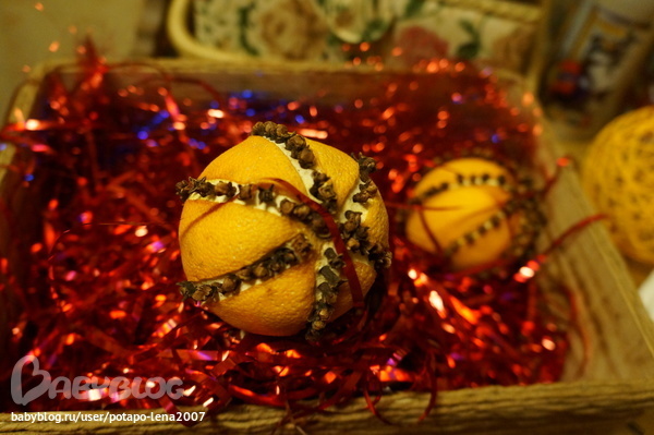 4.Ароматные шарики из апельсина украсила гвоздикой. Раскидала по всему дому. Ну а вообще у меня на них планы)))))). Позднее расскажу и покажу.