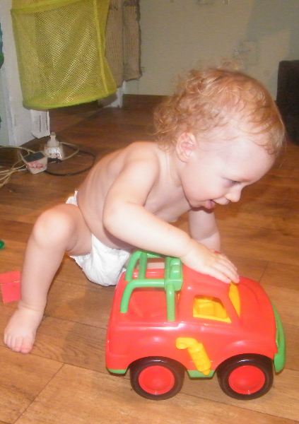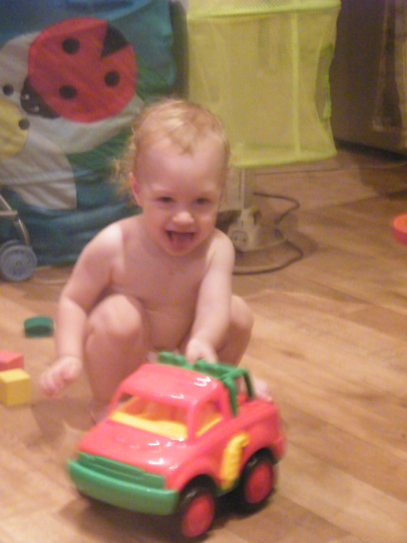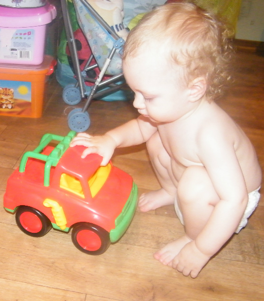 А Леша все скидывал на пол, но нашел среди фигурок машинку и увлекся ее катанием))))))