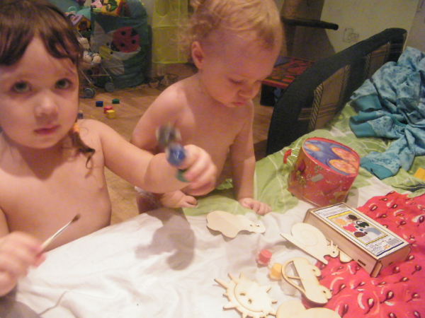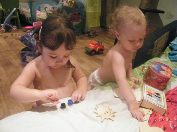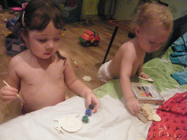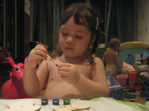 Все, каждый занят своим делом)) Олеся изучает краски: