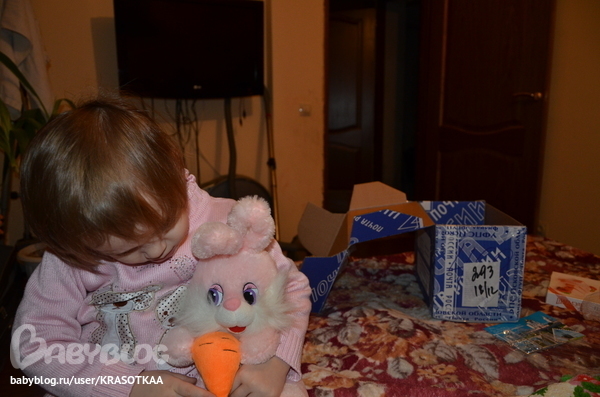 Дорогая наша Снегурочка Вы и Ваша семья принесла радость и праздничное настроение в наш дом. Извещение я получила еще вчера и как конь понеслась на почту, но....... очередь и одно рабочее окно навело меня на мысль, что получу я посылку как раз к утру следующего дня, мои подозрения подтвердил и сотрудник почты. Поэтому я поскакала домой и на следующий день, точнее к открытию я была на месте и первая получила нашу посылочку. Сейчас привела детей и началось потрошение и дележка наших сокровищ.