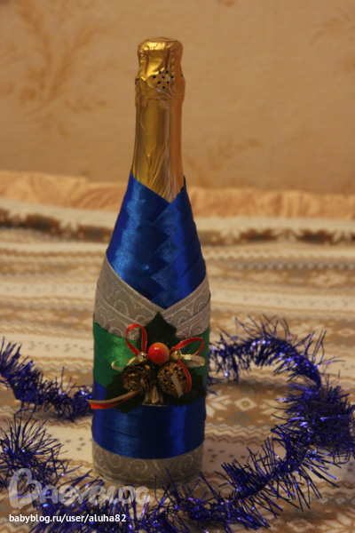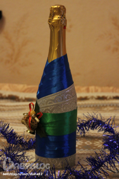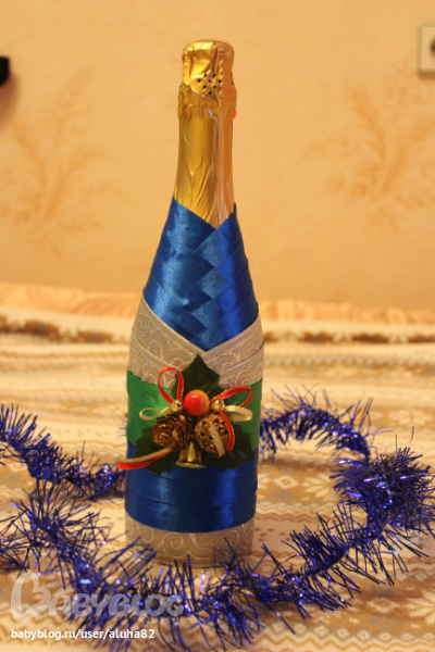 Оформление праздникаПолучилась у меня вот такая бутылочка. Задекорированная. Строго не судите. Первый раз такое делала.
