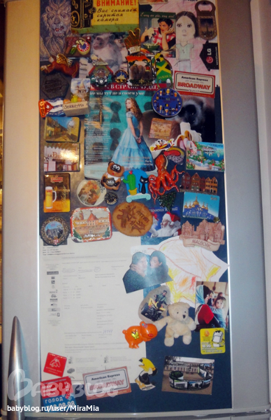 А вот и магнит (внизу справа) занял свободное место рядом с остальными на нашем холодильнике.