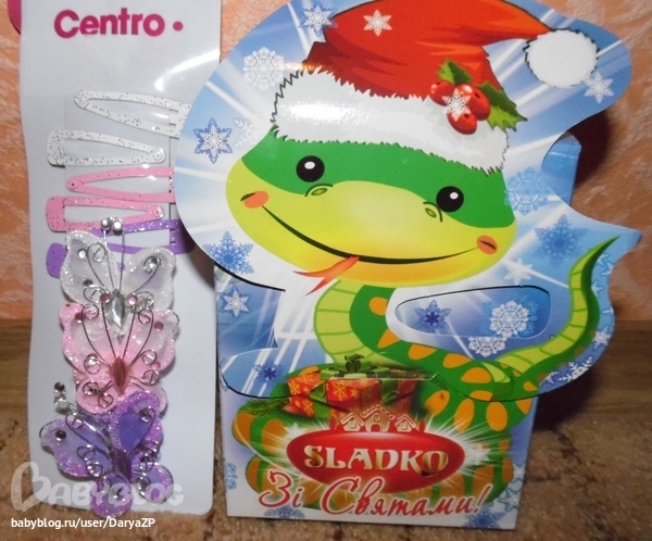 Ну а для любимой крестницы - сладости и заколочки с резинками, любит она прически всякие))