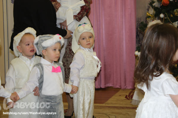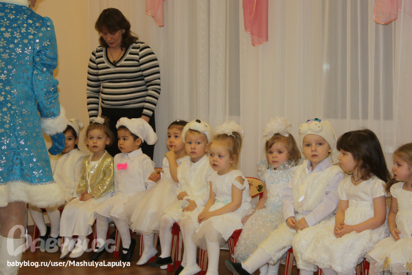 В основном дети которые спокойно ходят в дс, не плакали, а кто редко ходит или плакает каждое утро, на празднике вели себя как обычно капризно. Привыкнут - это дело времени.