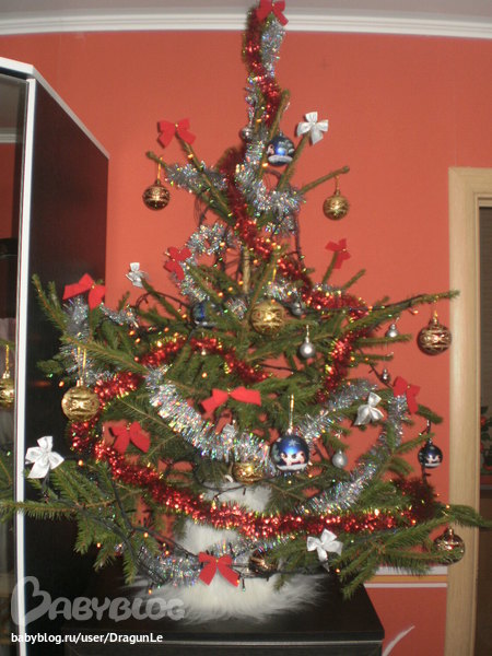 Кстати , а это наша ёлочка . Первая - ЖИВАЯ !!! Всю жизнь ставили искусственную ... И наша , тоже искусственная , под потолок , в комнате нашей не умещается ))) ...
