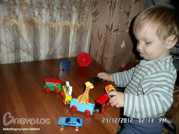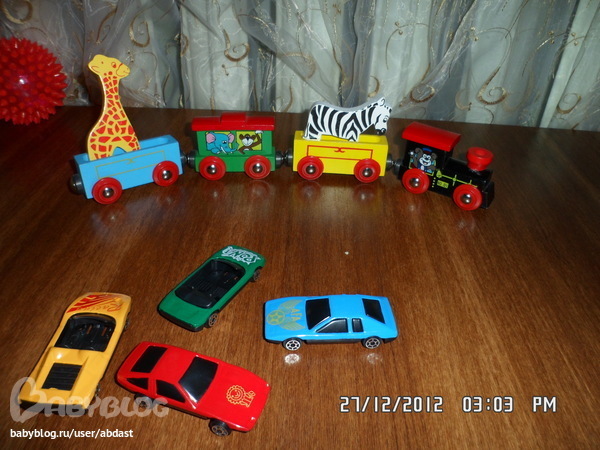 Первыми был деревянный паровозик на магнитиках и кучка машинок!