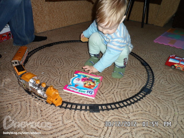 А на следующий день пригласили бабушку и подарили все остальное! Вот - железная дорога!