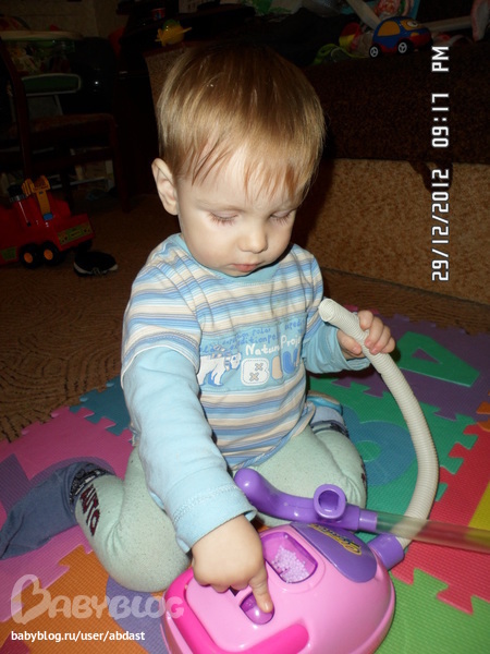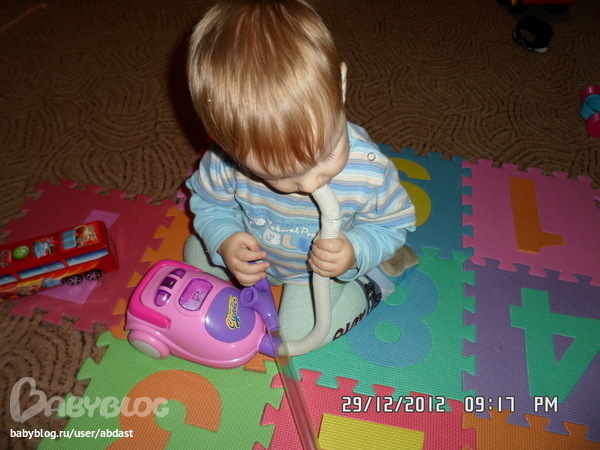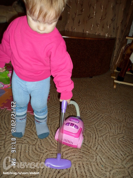Мы очень странно относились к настоящему пылесосу! Истерили и требовали его , но не игрались, а просто рыдали и не разрешали никому его трогать! А теперь все просто счастливы!