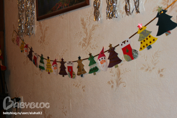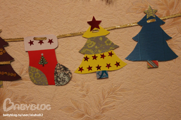 Оформление праздникаКак-то я писала пост о том, что нам в садике дали задание, сделать гирлянду для группы (вот ссылочка http://www.babyblog.ru/community/post/fiesta/1697420). Так вот примерила я ее на свою стеночку и так мне жалко стало, что у меня не будет она висеть на стеночке. В результате в тот же вечер решила сделать еще одну. Родные мои так удивились, когда увидели, что я еще одну сооружаю. Муж сказал одно:"Ну ты даешь! Я бы на это точно не решился!"