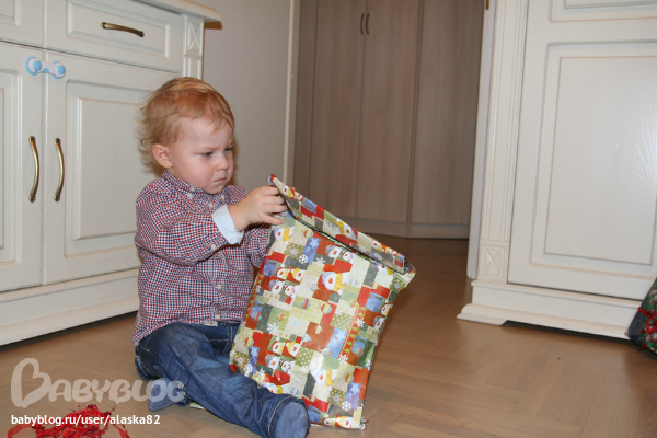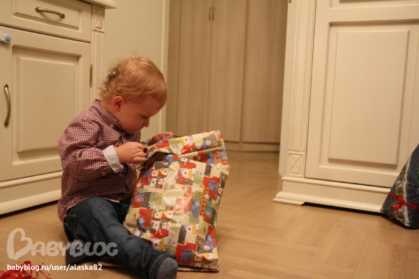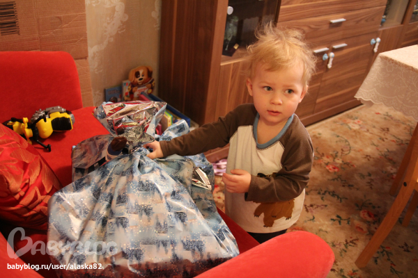 С горки удалось обратно домой увести под обещание, что Дед Мороз еще кое что принес)))