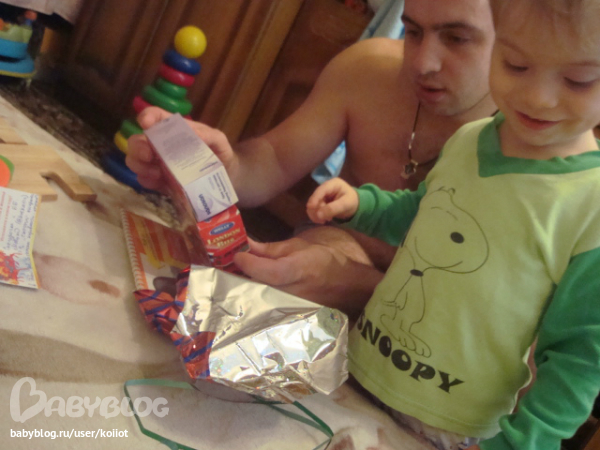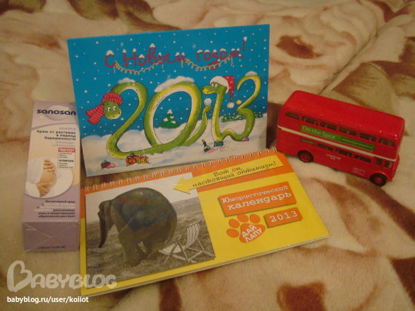 Мне крем от растяжек для беременных- и об этом снегурка не забыла;)то что надо! Папе- настольный юмористический календарь.