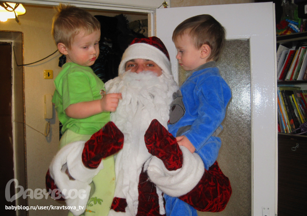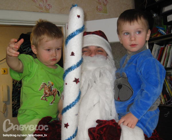 Так мы досидели почти до утра... На следующий день решили опять нарядить Деда Мороза, чтобы он опять подарил подарки детям и вновь прибывшим гостям. На этот раз роль Деда Мороза исполнял мой муж... Потом мы поиграли в сказку "Репку" (тоже весело получилось), устроили конкурс для пап (папы с детьми на шее приседали 10 раз), победителя так и не выявили, поэтому приз отдали двоим)))