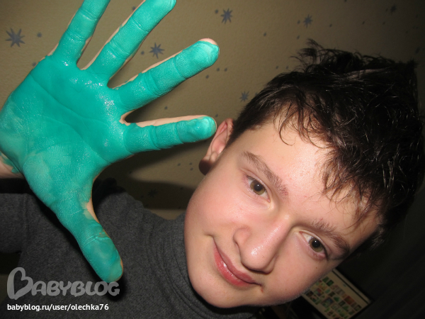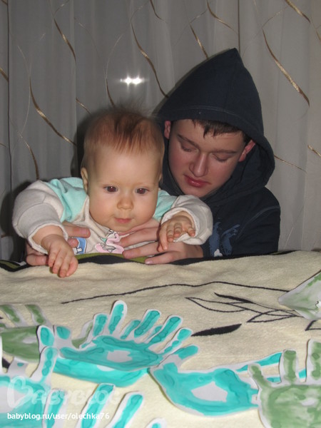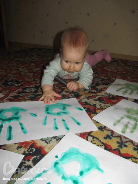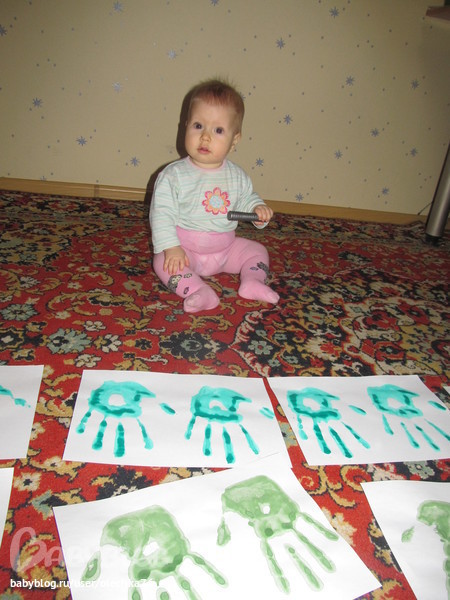 А здесь наша деффчОнка охраняет ладошки, ждем пока высохнут