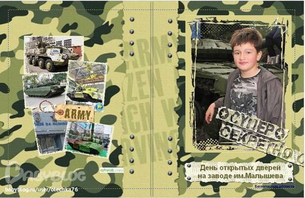 Еще какия подарки мы готовили... Сыну нашего крестного я подготовила фотокнигу, собственно Лешке досталась такая же. Еще в сентябре они ходили на день открытых дверей на завод им. Малышева, где танки делают, я их там нафотала, они уже и забыли. а я сделала книги в стиле милитари, практически одинаковые. Лешка конечно знал, для него это сюрпризом не было. А вот второй мальчишка и не мог предположить что же это ему подарили, так как все было запечатано и упаковано. И он и родители остались довольны.