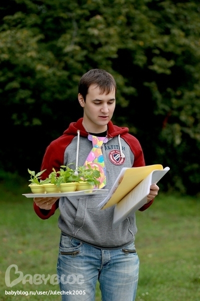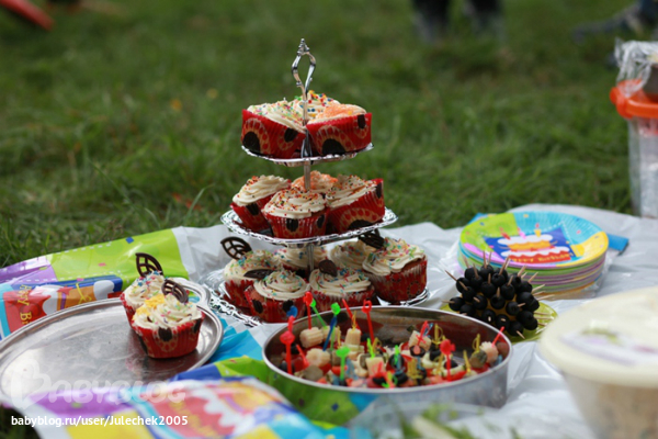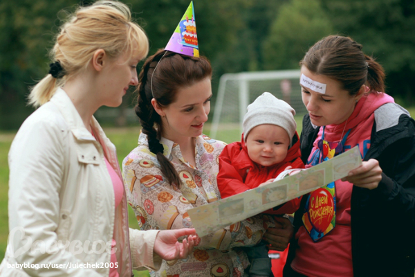 Отобрала конкурсы, которые, как мне казалось, подойдут именно нашим гостям. Но провела далеко не все, потому что празднование на улице не предполагает той сплочённости, что бывает в замкнутых помещениях. Там у нас кто в футбол играл, кто в бадминтон, кто кучковался возле именинника и уже принимал участие в моих задумках ;)