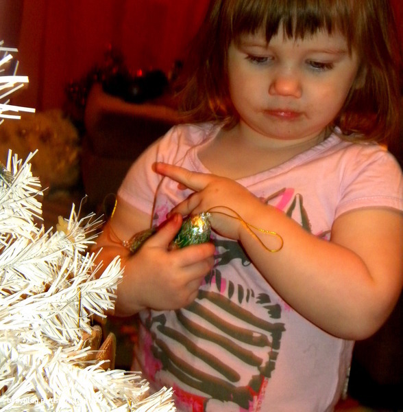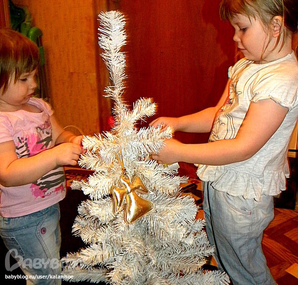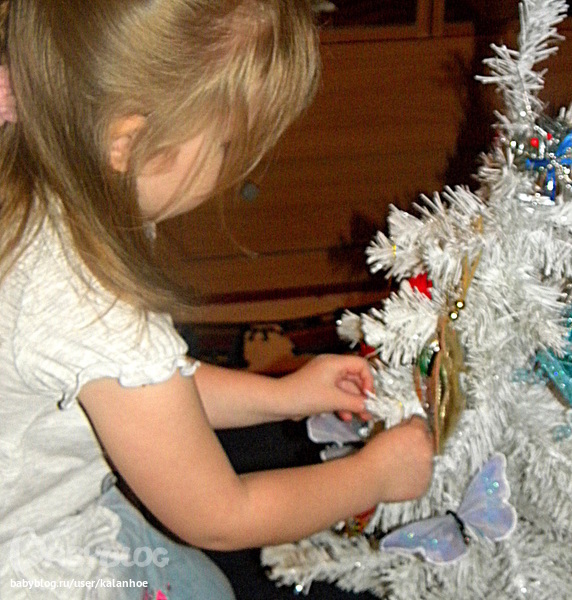Чуть позже девчушки стали украшать ёлку.