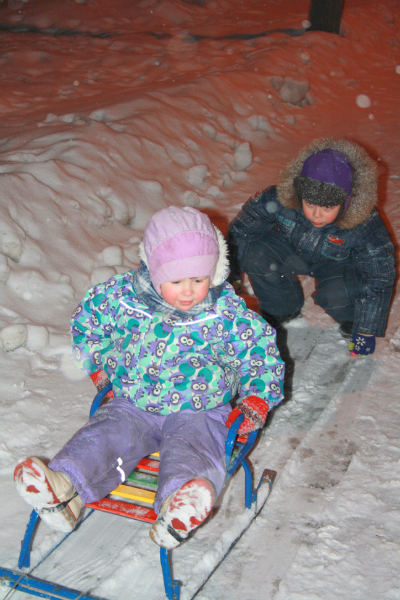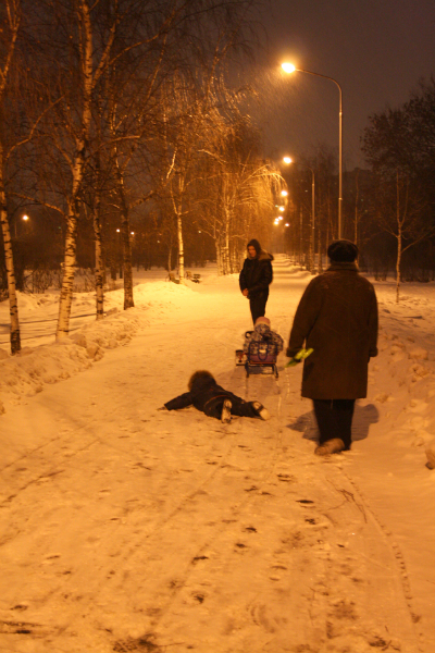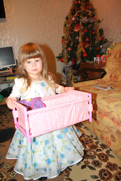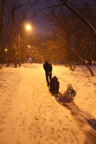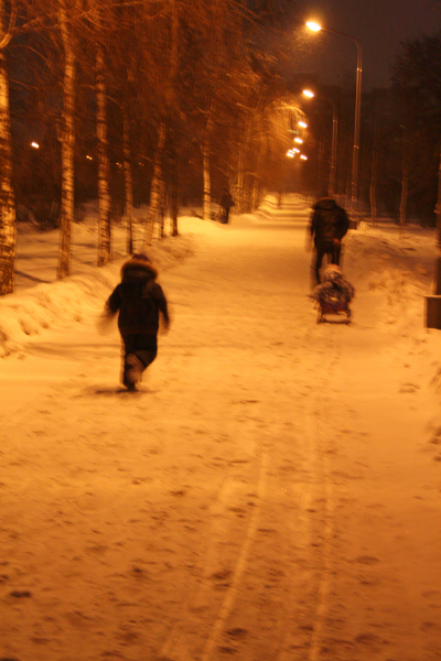 Утро 31 было тихим и спокойным...В каждой комнате у нас по ёлочке,самая большая у нас,и маленькие в других.На кухне ёлочка-свекровина,ну так мы гвоорим.И вот ,проснувшись,дети обнаружили там подарочки от свекрови)Даше Мокси с нарядами,а Саше заветное PSP)))Радости не было предела!!!Ну и пока дети были увлечены подарками мы спокойно с мужем отправились за недостающими продуктами в супермаркет,свекровь остались с детками дома.Всё прикупили,приехали,повалялись до вечера за просмотром НГ-фильмов,мультфильмов.А ближе к вечеру отправились все вместе гулять)Как же хорошо гулять 31 декабря вечером-вокруг все спешат,в домах огоньками светяться кухни-там нарезаются салаты и всяческие приготовления к праздничному столу.А мы)А мы никуда не спешим,неспешно прогуливаемся,ловя медленно падающие хлопья новогоднего снега)Ведь тонны салатов на ужин нам не надо,очень всё минимально и по-скромному)