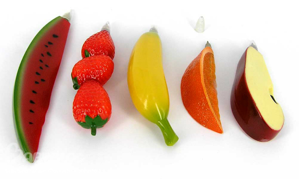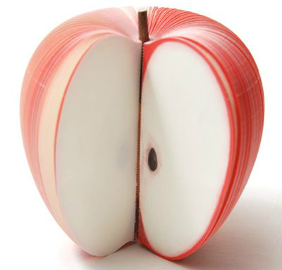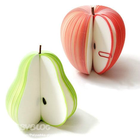 Японская компания D-BROS, занимающаяся графическим дизайном, выпускает такие блокноты. Каждый блокнот упаковывается в сетку, как настоящий фрукт. 150 страниц, диаметр блокнотов 45мм, а высота 104мм