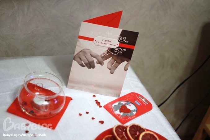 я в том году купила блок жевачек лав ис) и оставила на кухне с открыткой, сама ушла на работу) потом мы долго их жевали и читали вкладыши что такое любовь))