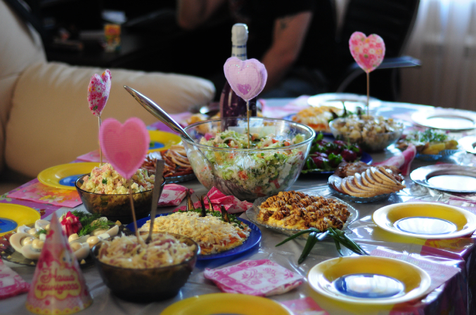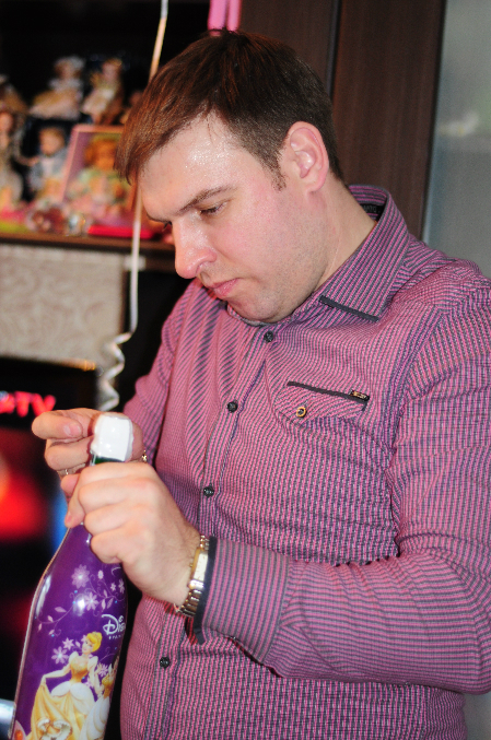 кстати,заметьте-папа,мама и все дочки(и даже часть гостей!!!)были одеты в сиренево-розовой гамме))Заранее так задумано))и украшено тоже))