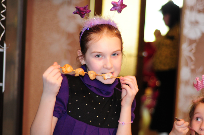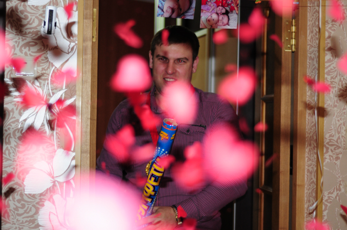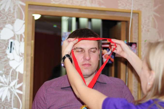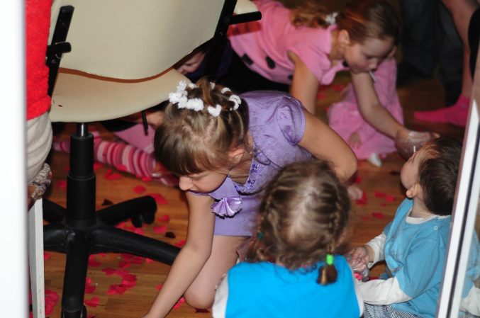 например,после того,как запустили сердечки-конфетти...Детям раздали мешочки и они собирали их))Потом получили призы в нескольких смешных номинациях.