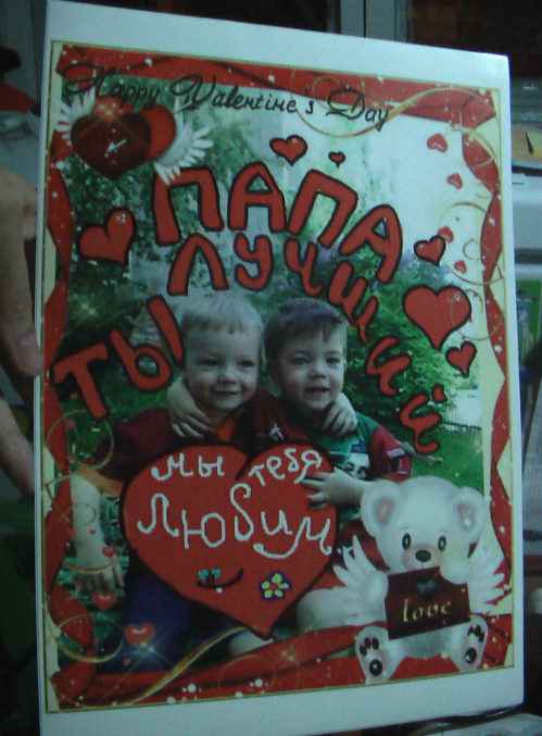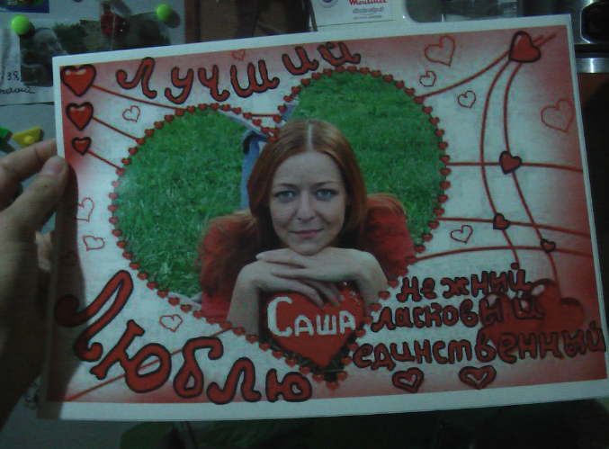 оформление его машины моей,его и детской фотографией где написаны слова любви.Также наклею сердечки.Фотки вставляла в шаблоны,потом на них писала слова а потом отдала йнтот шедевр в фотоцентр где мне сделали все это безобразие))))))))))в виде наклеек.В самой машине будут воздушные шары в виде сердца.