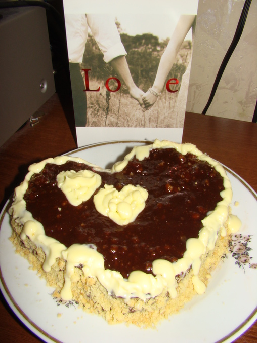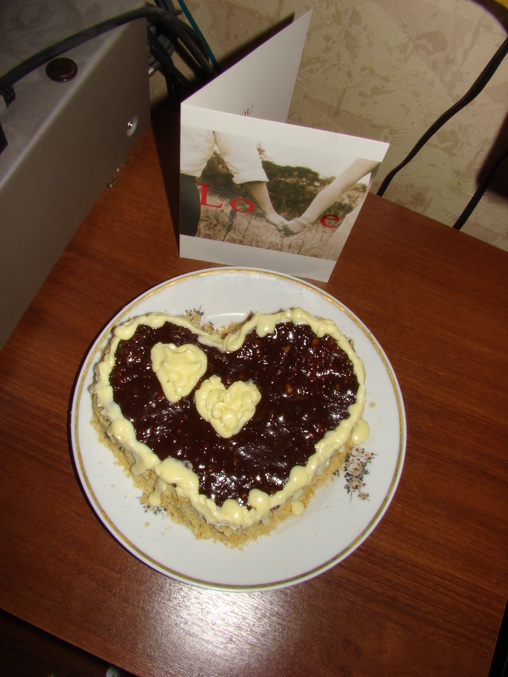 Человек, который напрочь не переносит это праздник любви, валентинки и прочее, встал черти знает во сколько утра и перед работой испёк мне тортик!!!