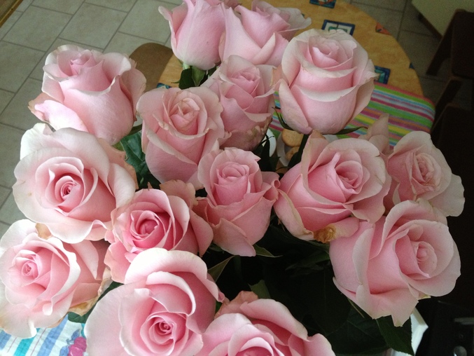 И вот приехал муж с работы. С огромным букетом нежно-розовых роз, настолько ароматных, что от них кружилась голова, обнял меня, поцеловал и погладив мой живот сказал, что очень сильно нас любит....