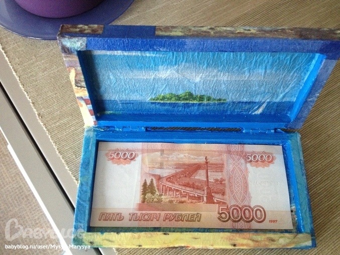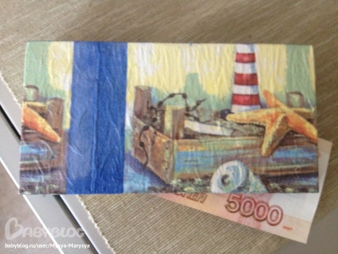Получилась как бы такая купюрница-копилка для копления денег на всякие разные приятности: на отпуск или еще что то заветное и для души.