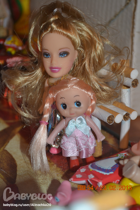 а потом я купила взрослых кукол (у которых оторвала головы) а с ними в комплекте был ребенок и этот ребенок как раз Я только с другой головой! Так что потом эта кукла должна была быть Милаша но потом когда я покупала близнецов мне понравилась маленькая кукла брелок и я сделала ее Миланой. а эта кукла должна была быть у нас на входе возле охраны типа в гости пришла но я про нее забыла!