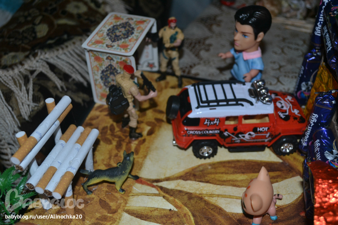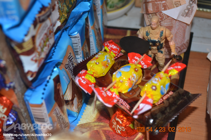 23 февраляТак же как и в день влюбленных, 23 февраля моего мужа не было дома, он был в командировке в Сочи! 25 он приехал и зайдя в дом сразу же увидел мой подарок к которому я готовилась несколько недель=))) Честно говоря его трудно было не заметить, он стоял посреди комнаты и занимал весь стол!