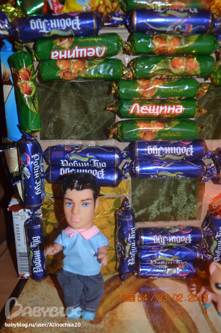 Мужу подарочек понравился он у меня сладкоежка=))) Будем превращать в реальность!! (мне было очень трудно его делать так как я аллергик и мне нельзя шоколад, + еще и на диете! В доме просто нереально пахнет конфетами! Я надеялась на то что муж его быстренько уничтожит но не тут то было, и сейчас меня этот запах просто с ума сводит!)=)))