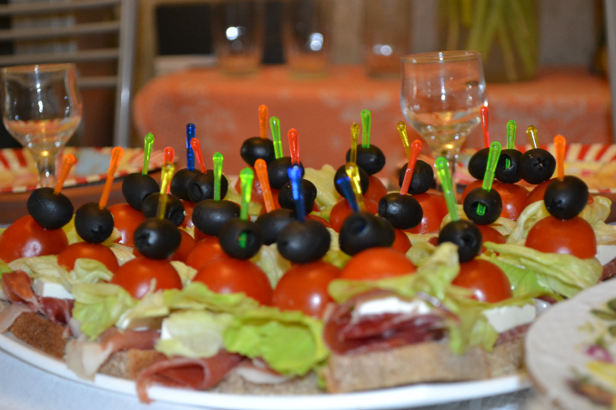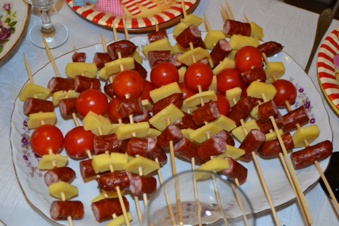 3)Да просто колбаски и сыр,а вот канопешки неочень удались сползали с палочек(несоветаю,лучше что то другое придумать.:-)