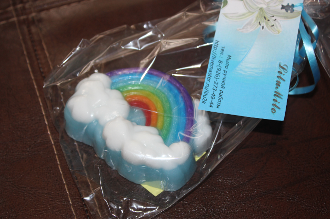 внутри было мыльце-радуга вот такое (правда перепутали цвета радуги - но я даже не заметила поначалу=)))