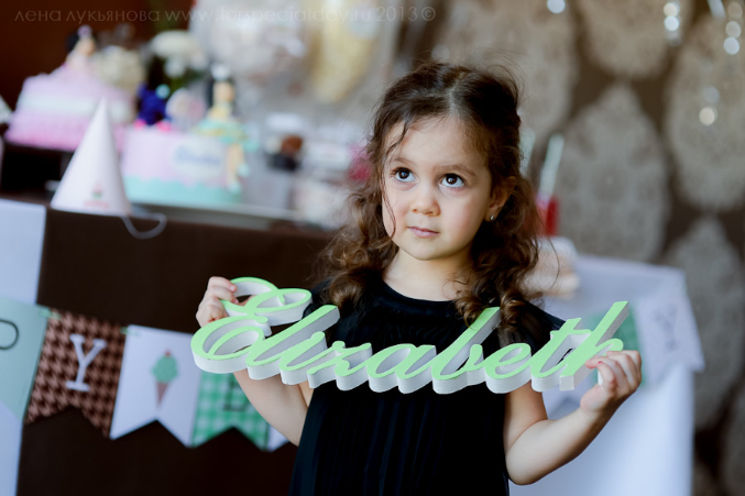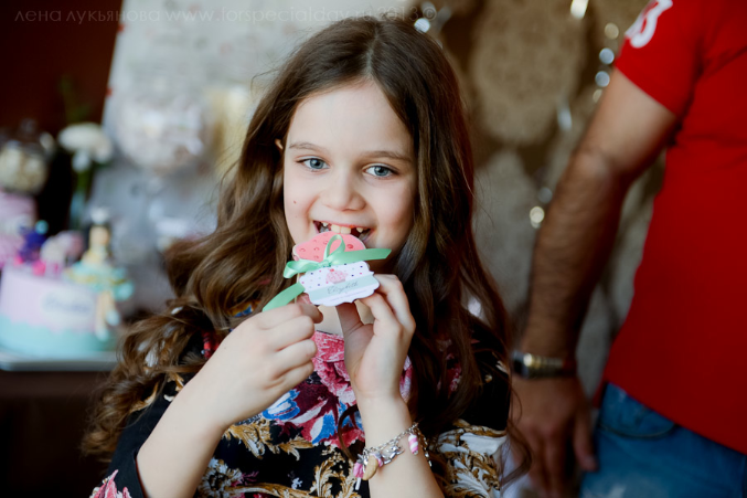 Каждая маленькая гостья,получила в подарок,такой именной браслетик,на печеньке Первая буква от имени девочки))