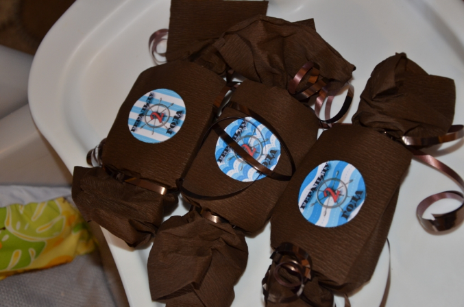 Все гости на память получили маленькие подарочки, внутри календарик с изображением Геральда, шоколадка и сувенирчик из соленого теста))))