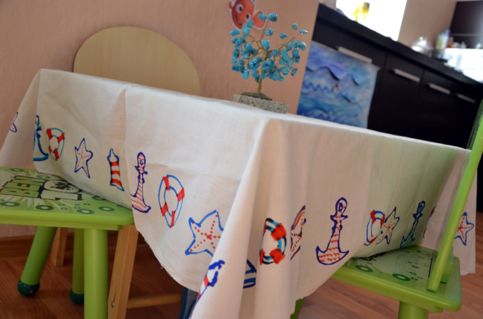 Скатерть - обычная пеленка, рисовала фломастерами.