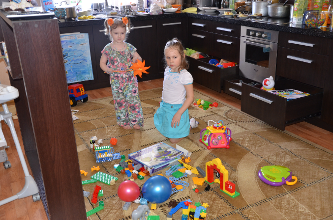 Ух! Вот это подготовка!!!!!А...в нижних ящиках на кухне игрушки?! :)))