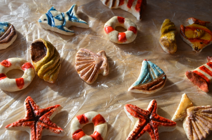 Очень красиво!)) Особенно понравилась пеленка с фломастерным декором)) и сувенирчики из слоеного теста сами делали?