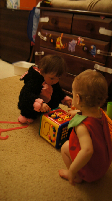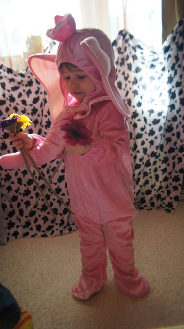 Все по разному отнеслись с необычным костюмам - кто то спокойно, кто-то не хотел сначала одеваться...Вот что получилось!