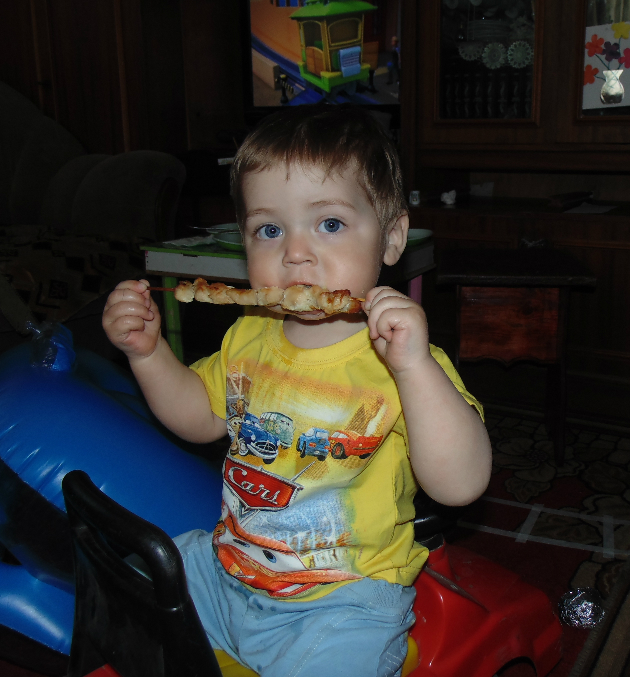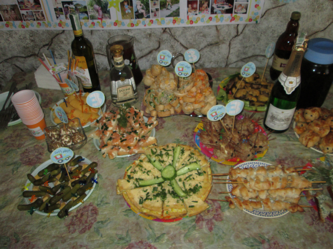 После того, как все хорошенько покушали, взрослые гости получили листочки со словами, которые Денис смешно говорил в начале своего разговорного пути. Полностью отгадать все слова правильно не смог никто, но больше всего правильных слов было у бабушки.