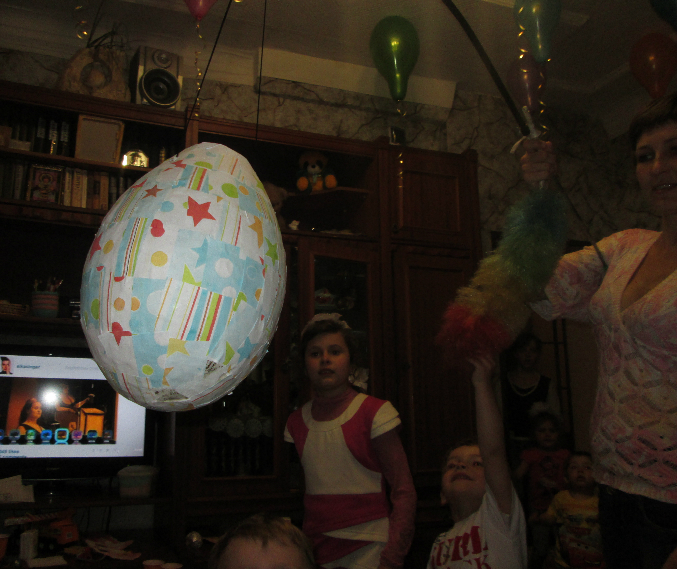 А в конце пиньята. Нормально сфотографировать ее не получилось, так как только вынесла - дети стали скакать вокруг нее и пытаться стукнуть))