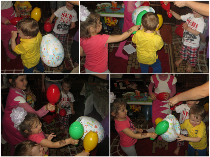 Тогда на помощь пришли взрослые и преграда была сломлена. Предотвращая вопросы напишу сразу - пиньяту делала из папье-маше в 5 слоев, для детей многовато, надо делать меньше. От идеи заполнения её сладостями отказалась сразу, поэтому внутри были конфетти, куча наклее на тему транспорт и ластики в виде различных предметов.