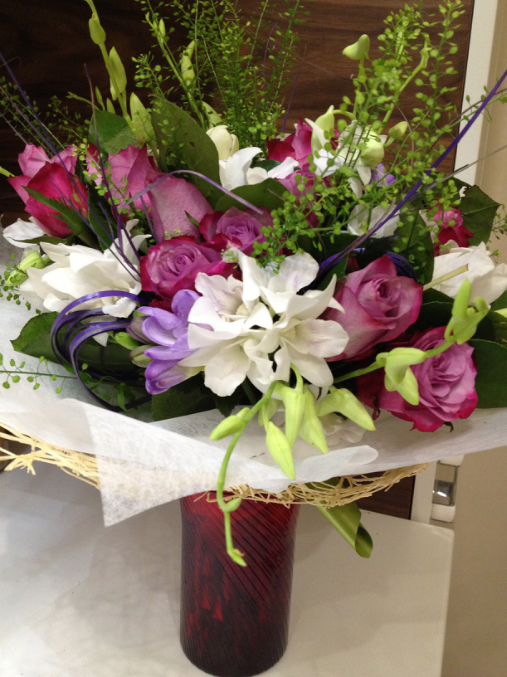 и шикарный букетик, который до сих пор (а прошла уже неделя) стоит как нетронутый))