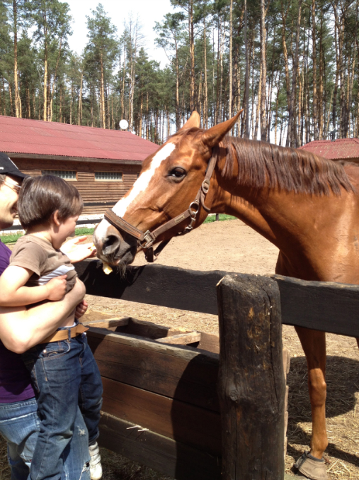 кормили яблоками лошадок, про морковь я забыла и не взяла из дома, а жаль, можно было бы покормить еще очень много живтоных)