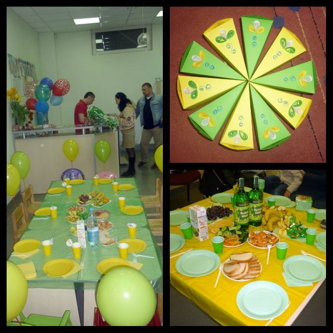 Было 2 стола один для взрослых,а 2 для деток.Было у нас 10 друзеи и 10 мам:)