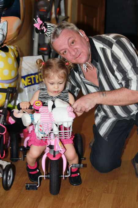 И как же без подарков)) Главный подарок был конечно от мамы с папой это чудный розовеньки велосепедик PUKY) Полинка сразу на него села и начала разьежать))))Очень уж он ей понравился)))