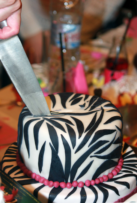 Все было украшено в белых,черных, фуксия цветах с принтом зебра и Минни маус. На потолке гелевые шары в количестве нам правда неизвестном, т.к. надували сами и после 90шт. сбились) Еще из шаров были фонтаны с Минни и зеброшарами, а также ходячий шар Минни.