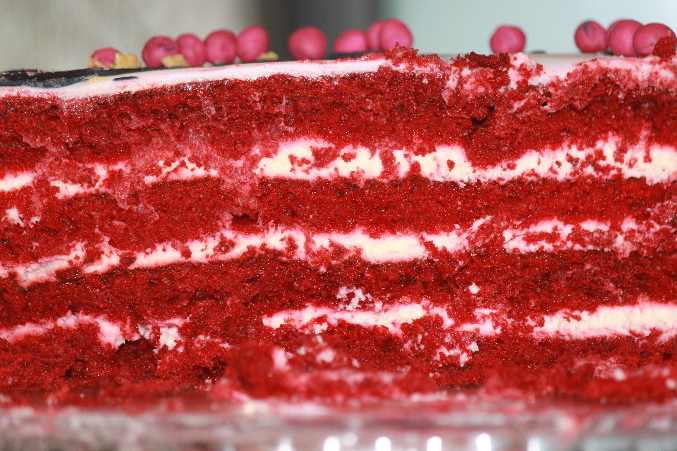 Тортики ( первый был ванильный бисквит с ананасом и миндалем, второй карамельное птичье молоко с орешками, а нижний ярус красный бархат)